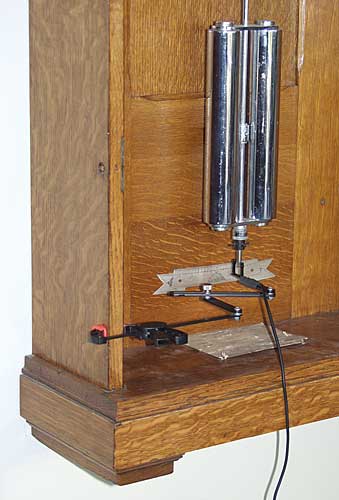 We have produced an optical sensor on a clamping arm that will allow you to use the optical sensor on wall- hanging clocks or on house calls much more easily. The sensor is based on a bar clamp with rubber jaws. You can safely clamp this to the side of the clock. An articulated arm made of anodized aluminum is fastened to the clamp with an optical sensor at the other end. You can position the arm to locate the optical sensor under the bob of the clock you're working on.